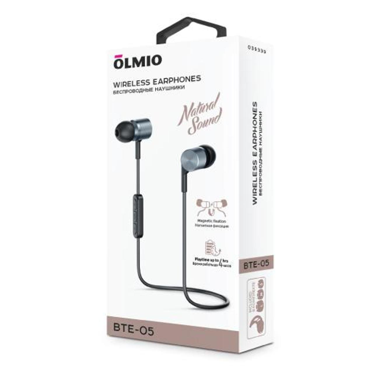 Внутриканальные Bluetooth-наушники Olmio OLM-BTE-05-BLACK — модель с шейным ободом, предназначенная для прослушивания музыки во время занятий спортом и активного отдыха.
