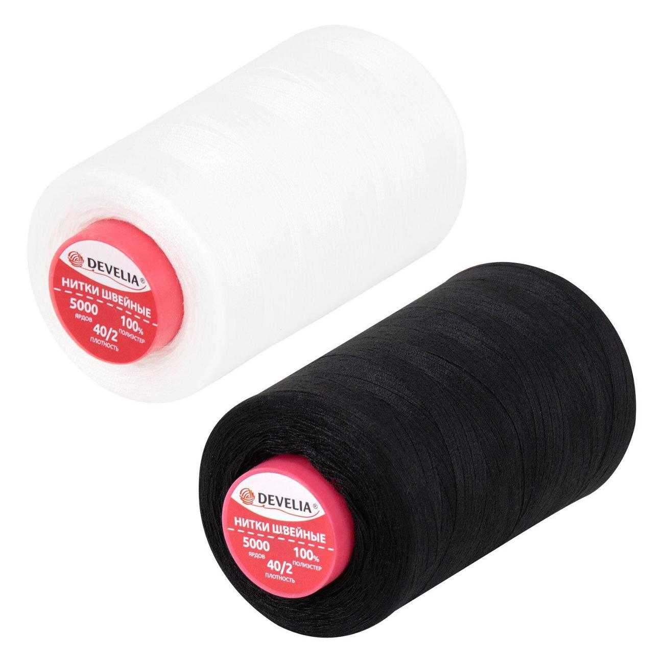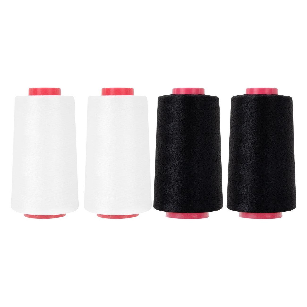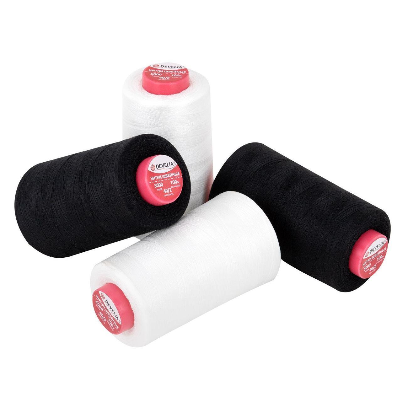 В набор входит 4 катушки ниток белого и черного цветов. В намотке 5000 ярдов (4572 м). Упакованы в термоусадочную пленку.