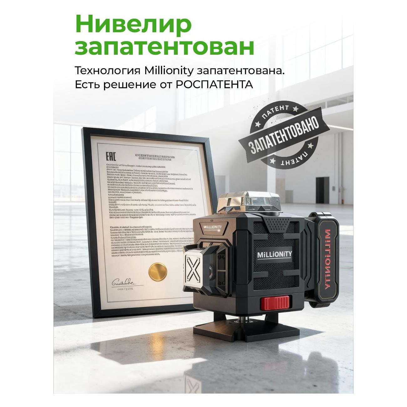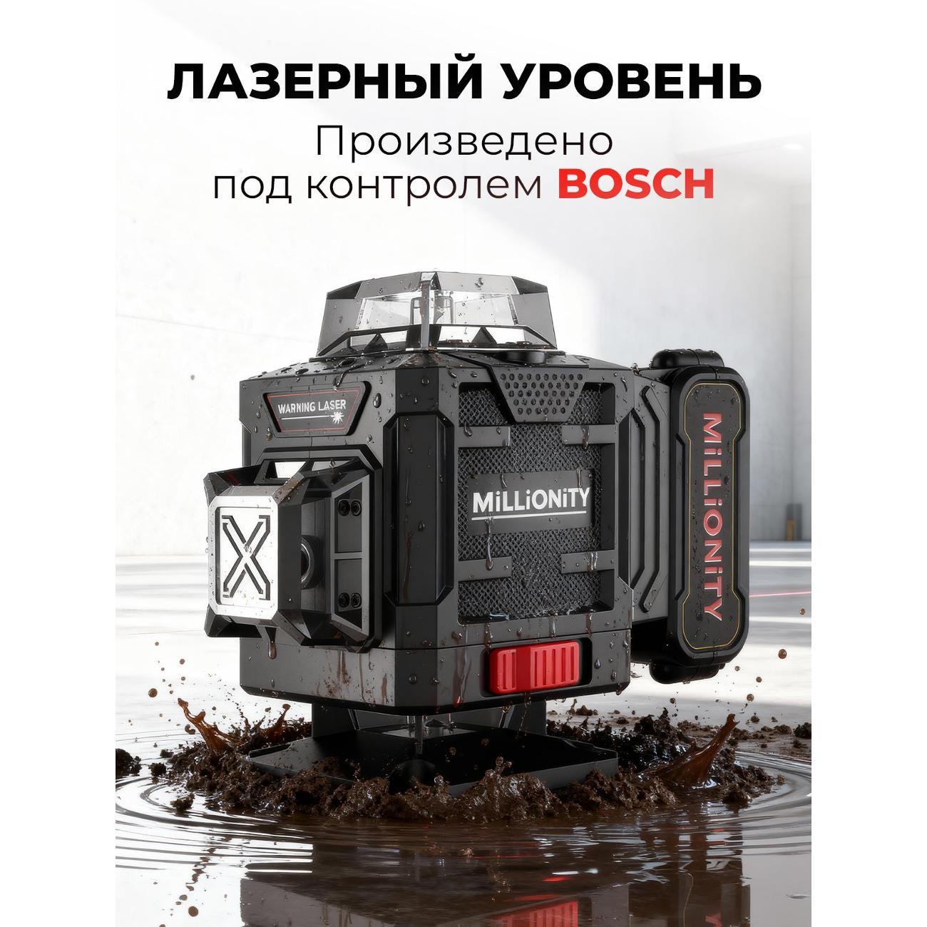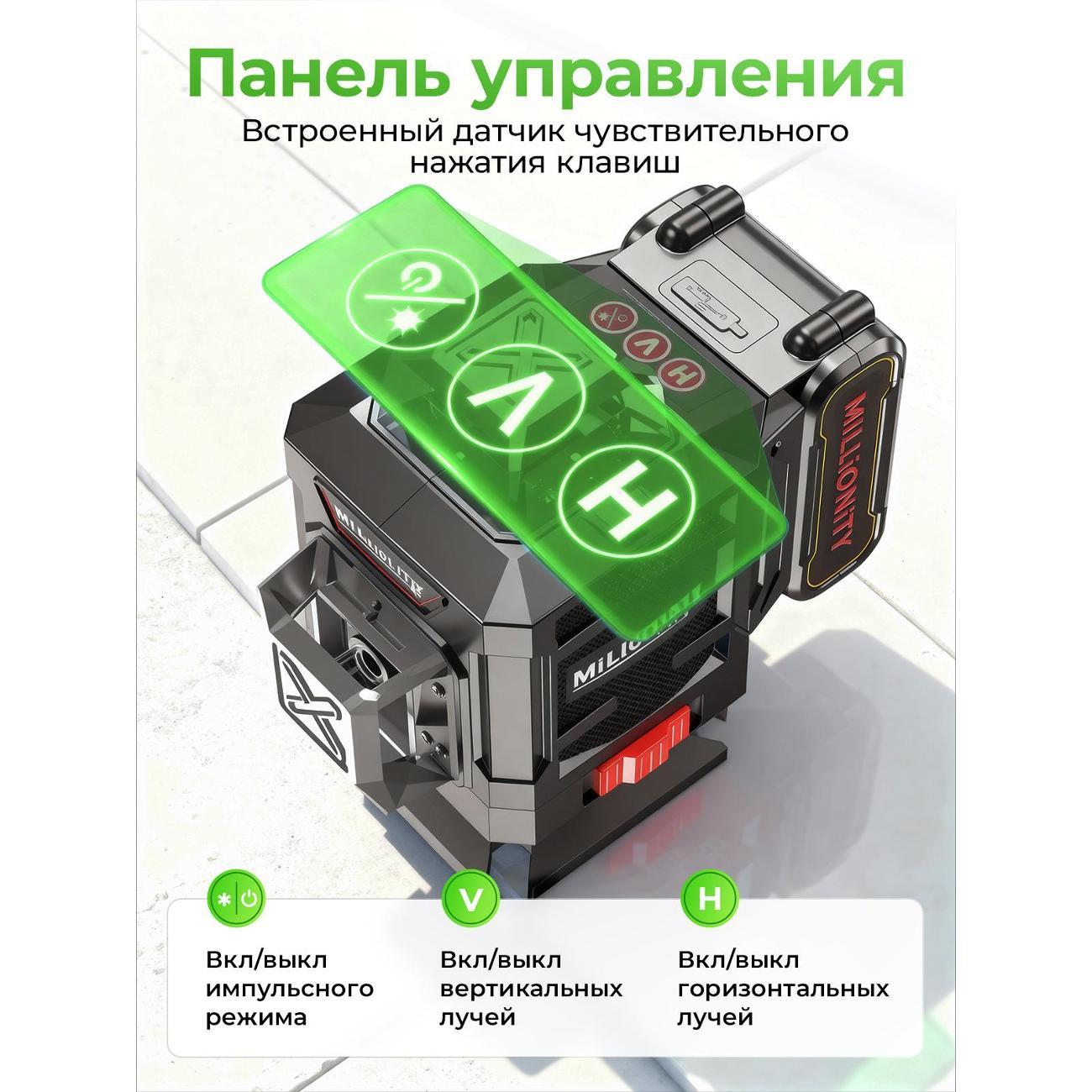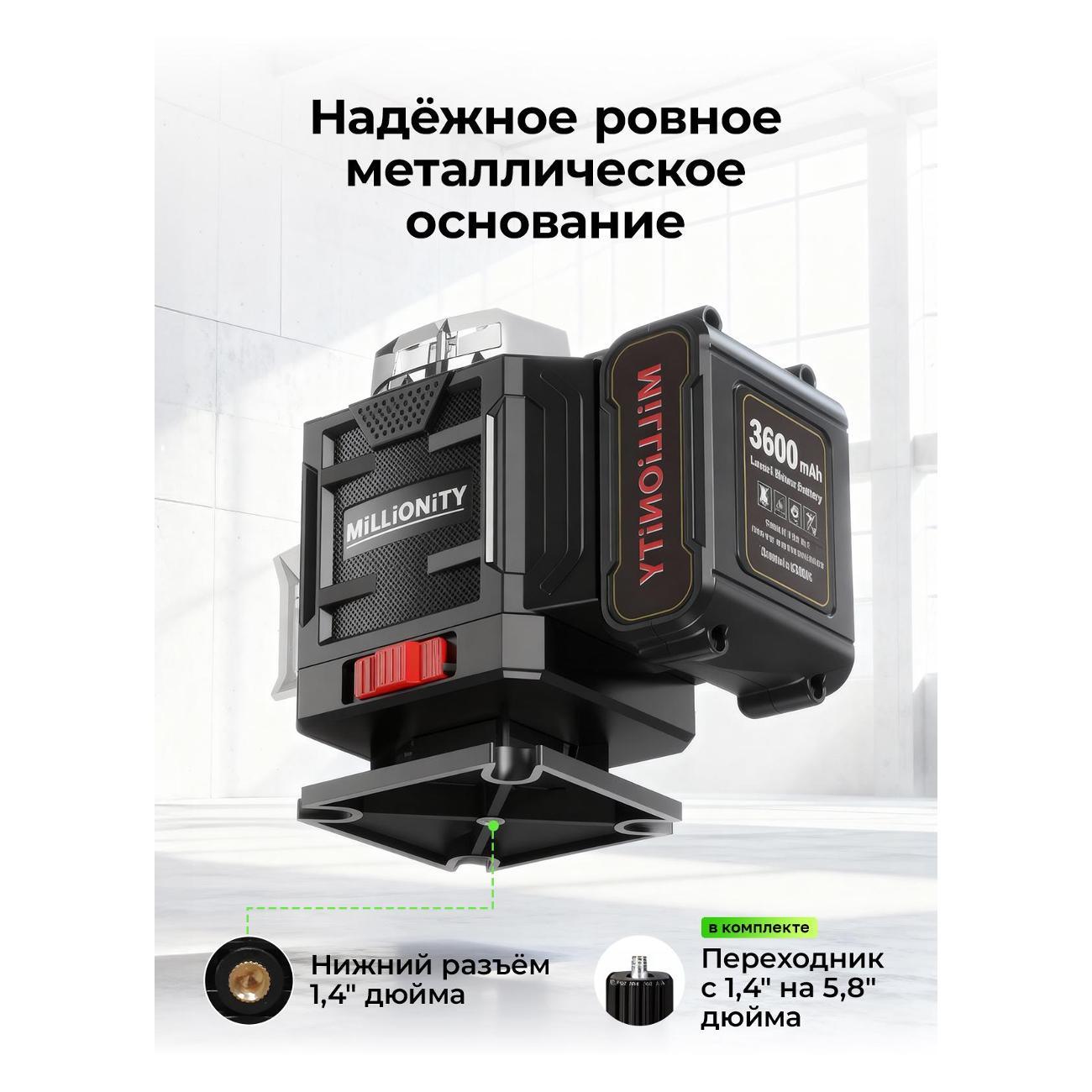 Лазерный уровень Millionity MKE-Black — самовыравнивающийся электронный прибор, который предназначен для внутренней отделки помещений, установки оборудования, выравнивания стен и пола, установки потолочных конструкций, перегородок и монтажа настенного оборудования, нивелировки настенных полок и другое.