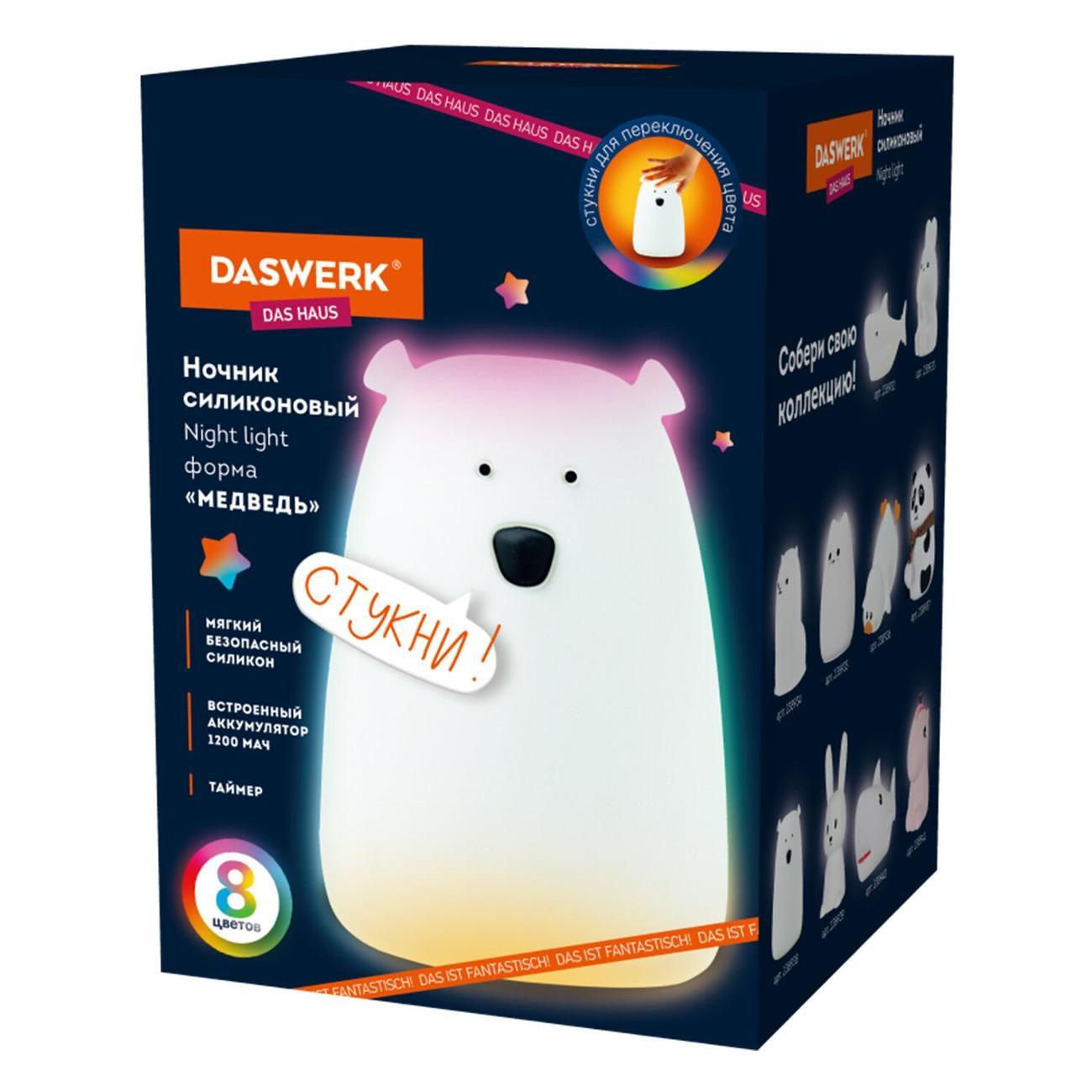 Вы можете купить Ночник DASWERK Медведь, RGB аккум 1200мАч USB в магазинах М.Видео по доступной цене. Ночник DASWERK Медведь, RGB аккум 1200мАч USB: подробное описание, фото и отзывы реальных покупателей, характеристики, возможность скачать инструкции и подобрать аксессуары.