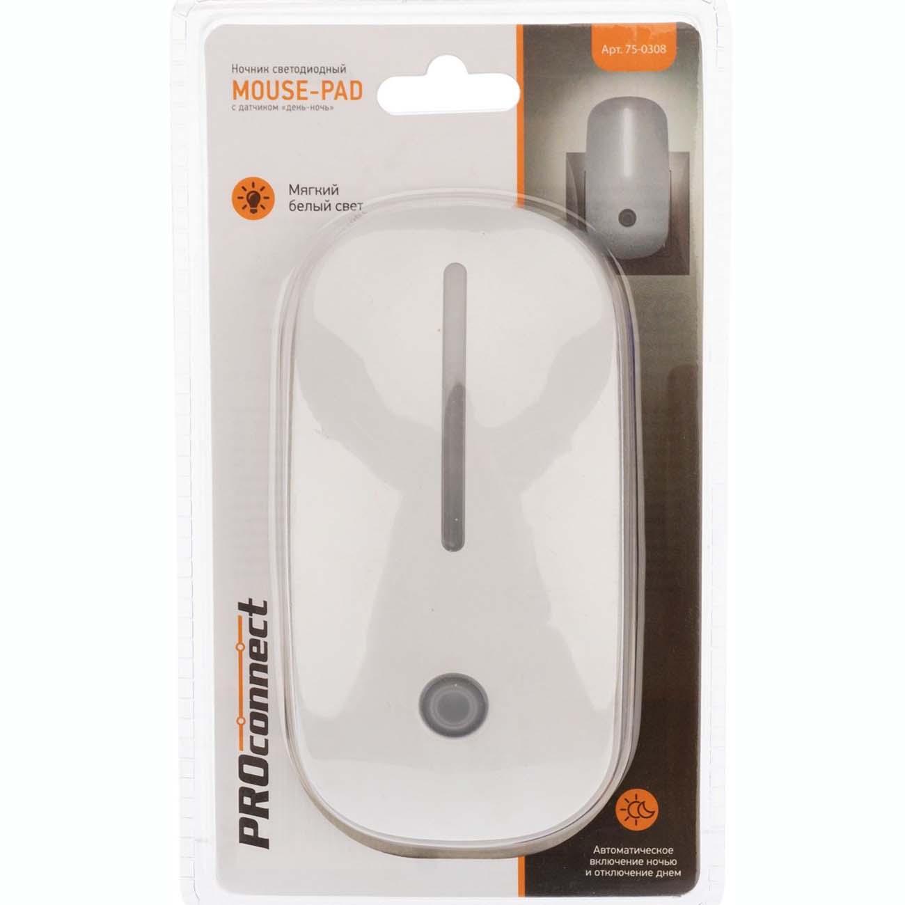 Ночник Proconnect 75-0308 автоматически отключается в дневное время и активируется при недостаточном уровне освещенности. Встроенный датчик позволяет экономить затраты на электричество. Максимальное потребляемая мощность не превышает 1 Вт. Подключение к сети 220 В осуществляется благодаря интегрированной в основание вилке.