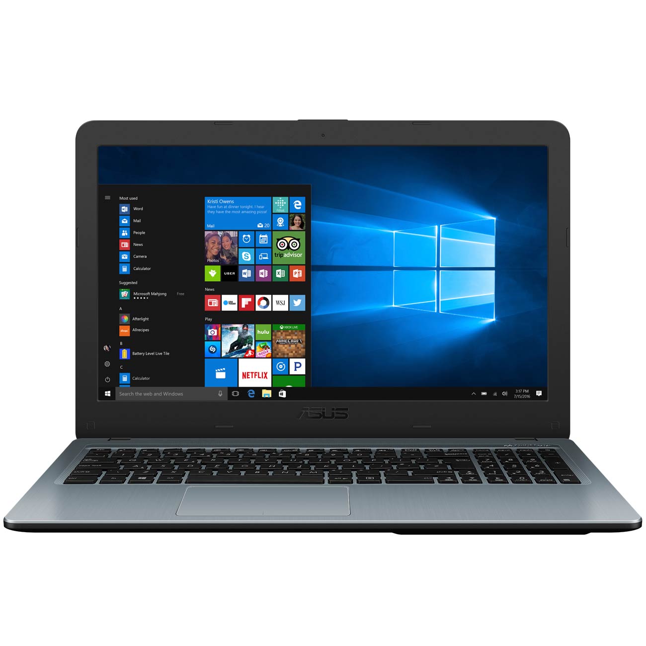 Мой старичок перестал меня устраивать, начал подвисать и батарея перестала справляться даже на час. Я промониторила весь интернет, ведь бюджет был ограничен, а требований не как у геймера, но и не как у любителя косынки. Я остановилась на ASUS R540BA-GQ194Tс "красным" процессором AMD A6-9225 с частотой 2.6ГГц. По факту получила рабочую лошадку с которой могу и работать,и играть,и фильмы смотреть. Начну с внешних данных. Экран для ноута немаленький 15", можно смотреть фильмы без прищура, читать книги, глаза совершенно не устают благодаря Eye Care. Есть боковая цифровая панель, кстати, мне нужна была такая клавиатура для работы, с ней набирать цифры получается в разы быстрее. Красивый цвет под сталь, выглядит круто,хотя сам корпус из пластика. Ноут тонкий и очень легкий, всего 2кг, я его спокойно переношу и на учебу, и на работу и в гости. Тачпад большой и очень комфортный для пальцев, даже можно мышку не докупать. Заряда хватает надолго особенно если сравнить с моим прадедом, часов 5-6, мне это за глаза. Почему AMD? У аналогов частота будет чуть ниже и данная модель представлена встроенным графическим процессором Radeon R4. Я работаю в 1С и автокаде, фотошопе, в офисных программах, работает без торможения, не виснет Картинка красивая,яркая, четкая. Камера слабовата 0.3Мп, но для общения вполне хватает. Звук средний, но я приноровилась и через блютуз включаю переносную колонку или наушники через разъем 3.5. Два входа USB2.0, есть более быстрый 3.0,могу перекинуть фильм на внешний диск за считанные секунды. Можно через HDMI подключиться к TV, проектору тогда перекидывать ничего не надо. Windows 10 не тормозит, буквально летает. Я выбрала именно HDD с террабайтой, потому что памяти за ту же цену будет больше,чем у твердотельных. Оперативка тоже неплохая, 8Гбайт. В общем, за эту цену ноутбут мне очень нравится,благодаря своей сбалансированности.