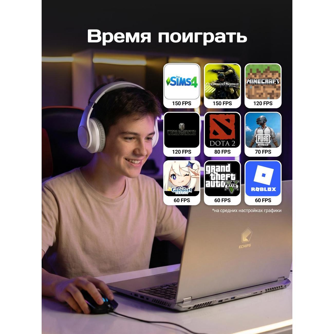 ECHIPS Rush: Мощный игровой ноутбук с дискретной графикой для работы и развлечений