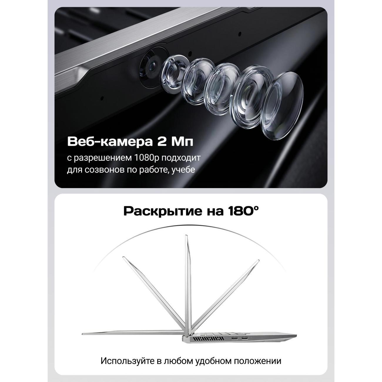 Крышка ноутбука выполнена из металла (Case A), что придает устройству премиальный вид и дополнительную жесткость. Остальные части корпуса выполнены из качественного пластика. Ноутбук оснащен подсветкой клавиатуры и полноценным цифровым блоком для удобного гейминга и работы с числами. Веб-камера с разрешением 2 Мп (1080p) имеет шторку для защиты приватности.