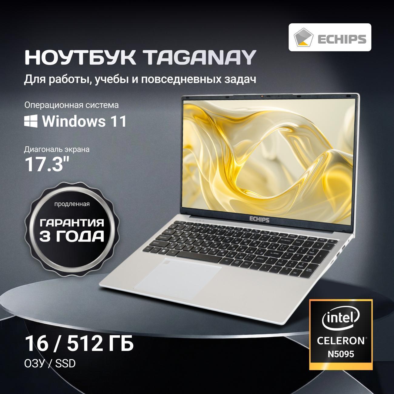 Вы можете купить Ноутбук Echips Taganay 17.3" Celeron N5095 16ГБ RAM / 512ГБ SSD в магазинах М.Видео по доступной цене. Ноутбук Echips Taganay 17.3" Celeron N5095 16ГБ RAM / 512ГБ SSD: подробное описание, фото и отзывы реальных покупателей, характеристики, возможность скачать инструкции и подобрать аксессуары.