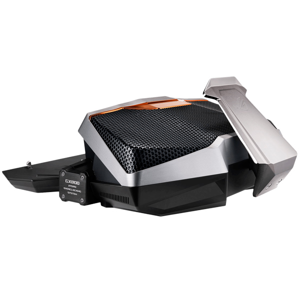 Ноутбук оснащён док-станцией, в которой расположена серьёзная система жидкостного охлаждения. Мощный двигатель гоняет по трубкам хладагент, который эффективно отводит тепло от разгорячённых ресурсоёмкой игрой процессора и видеокарт. Таким образом, внутри устройства всегда поддерживается оптимальная рабочая температура даже при самых серьёзных нагрузках.