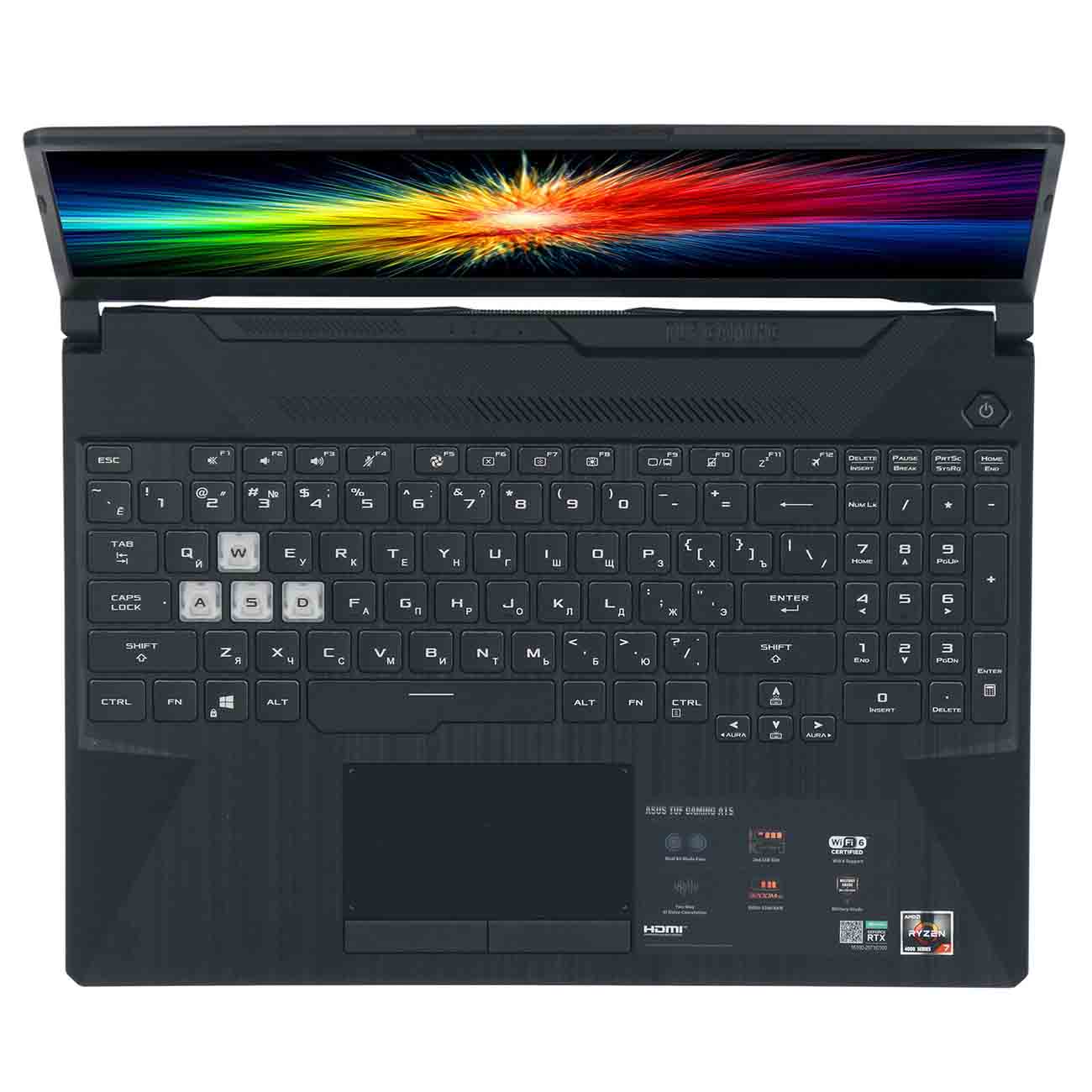 Asus TUF Gaming A15 FA506IE-US73 — игровой ноутбук в корпусе из алюминия и пластика черного цвета, оснащенный клавиатурой с английскими и русскими буквами, цифровым блоком и подсветкой. В эту модель уже интегрирована операционная система Windows 10 «Домашняя 64».