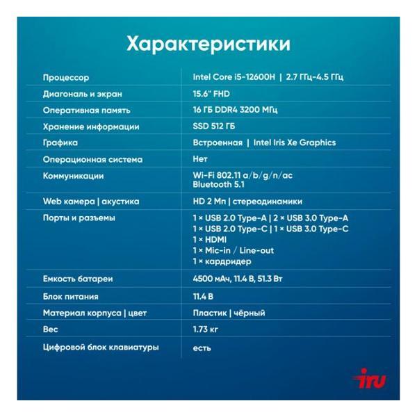 Вы можете купить Ноутбук iRU 15ALG в магазинах М.Видео по доступной цене. Ноутбук iRU 15ALG: подробное описание, фото и отзывы реальных покупателей, характеристики, возможность скачать инструкции и подобрать аксессуары.