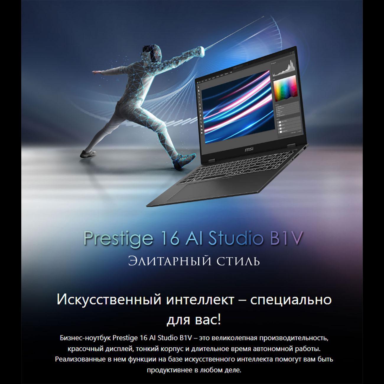 Вы можете купить Ноутбук MSI Prestige 16 AI Studio B1VEG-080RU(9S7-15A211-080) в магазинах М.Видео по доступной цене. Ноутбук MSI Prestige 16 AI Studio B1VEG-080RU(9S7-15A211-080): подробное описание, фото и отзывы реальных покупателей, характеристики, возможность скачать инструкции и подобрать аксессуары.