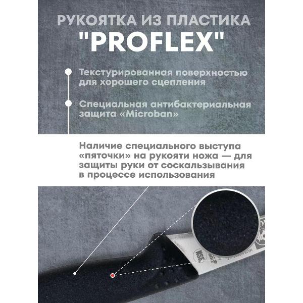 Сама рукоятка изготовлена из высокотехнологичного нескользящего пластика «Proflex Plus» со специальной антибактериальной защитой «Microban».
