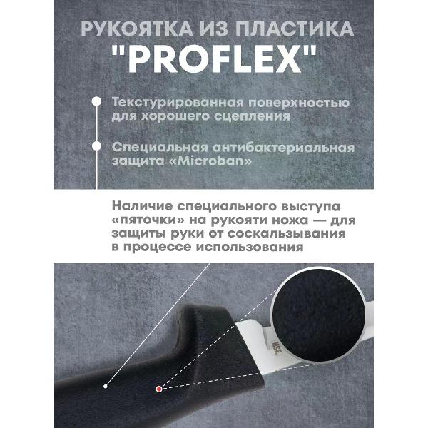 Сама рукоятка изготовлена из высокотехнологичного нескользящего пластика «Proflex Plus» со специальной антибактериальной защитой «Microban».