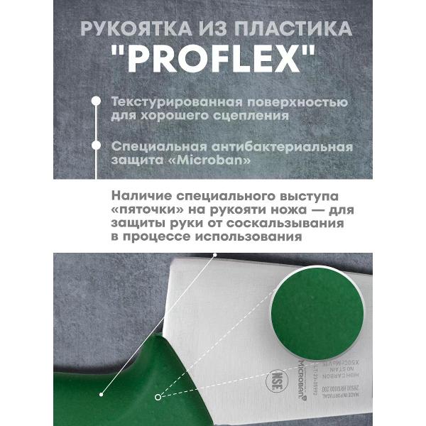 Сама рукоятка изготовлена из высокотехнологичного нескользящего пластика «Proflex Plus» со специальной антибактериальной защитой «Microban».