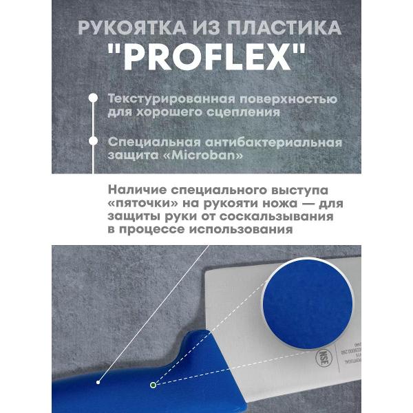 Сама рукоятка изготовлена из высокотехнологичного нескользящего пластика «Proflex Plus» со специальной антибактериальной защитой «Microban».
