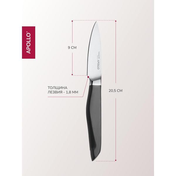 Кухонный нож для овощей Apollo — удобный инструмент для точных и аккуратных кухонных задач. Нож подходит для чистки и нарезки овощей, фруктов, ягод, а также для подготовки небольших ингредиентов. Компактный размер позволяет легко контролировать движение ножа и выполнять деликатную работу.