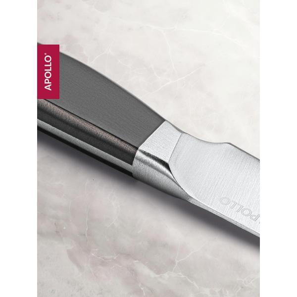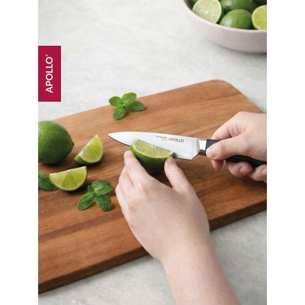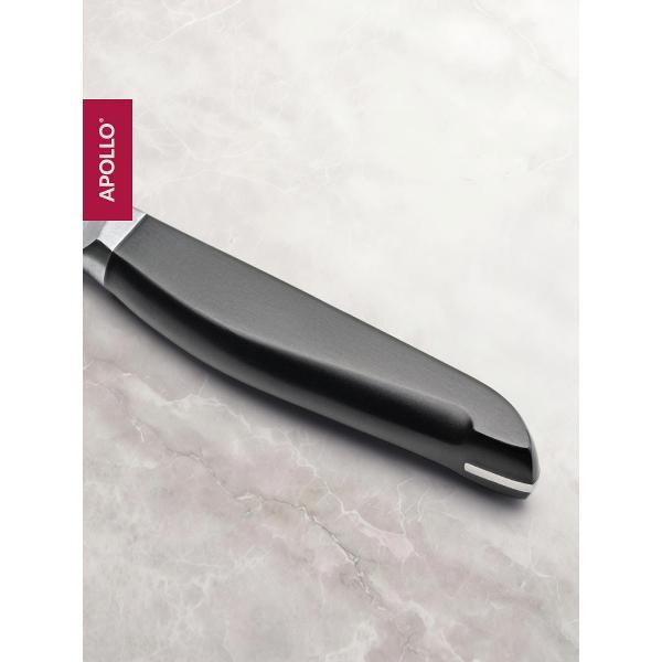 Профессиональный кухонный нож Apollo подходит для регулярной работы с различными продуктами и не требует сложного ухода — его можно мыть в посудомоечной машине.