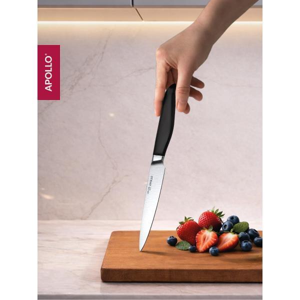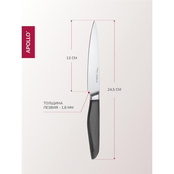 Профессиональный кухонный нож Apollo подходит для регулярной работы с различными продуктами и не требует сложного ухода — его можно мыть в посудомоечной машине.