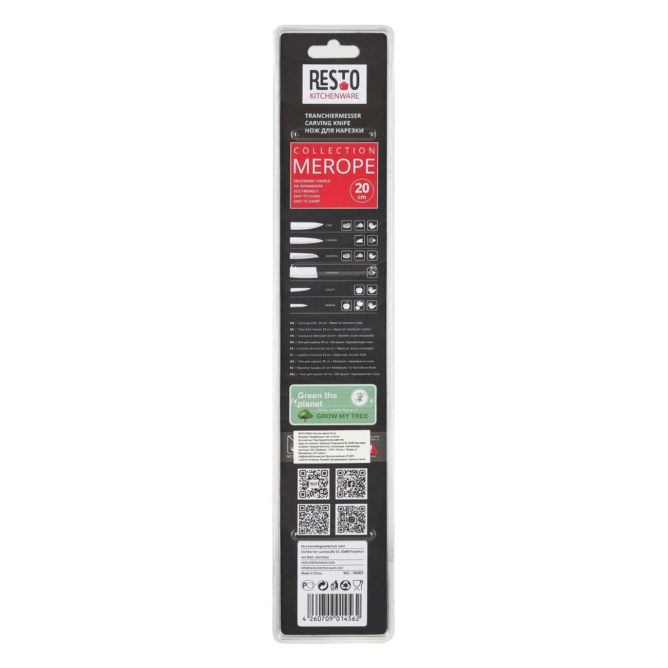 Вы можете купить Нож Resto разделочный, 20 см в магазинах М.Видео по доступной цене. Нож Resto разделочный, 20 см: подробное описание, фото и отзывы реальных покупателей, характеристики, возможность скачать инструкции и подобрать аксессуары.