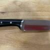 В целом обычный нож. Мне он обошелся с учетом акции и остатков бонусов, но полной суммы он, конечно, не стоит. Читая отзывы перед покупкой, кто-то писал, что после мытья в посудомойке появились ржавые точки, кто-то же пишет, что всегда моет его в посудомойке. Я скажу так: во-первых, если есть наличие пластиков и деревянных элементов, то ни в коем случае не стоит кидать это в машинку! Во-вторых, действительно не советуется ножи мыть в посудомойке, иначе вы попросту уменьшите срок его службы.
