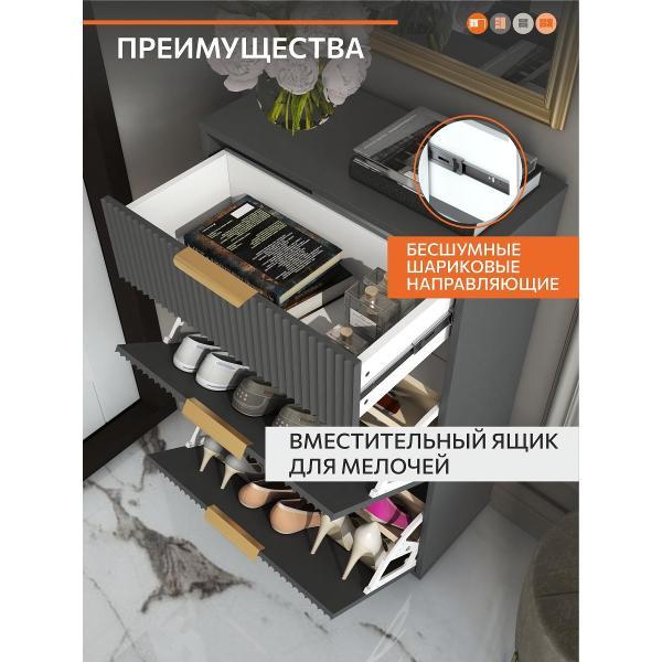 Качество ручек хорошее , тяжеленькие Цвет обувницы супер , модный . Графит Тк качество soft touch.Часть Летней обуви влезла, детская точно , в принципе пространство расчистила , но с зимней обувью будут проблемы , думаю . Нужно будет убирать перегородку и все пару штук влезет . Но все же лучше, чем будет стоять просто в коридоре . Фурнитура неплохая за такую стоимость . Обувницу подвесили, крепление в комплекте , но нам было недостаточно, стена тонкая , боялись что не выдержит. Поэтому чуть ли не по кругу еще ее зафиксировали😂😂 но это был мой бзиг )) В целом спасибо 🔥🔥 супер