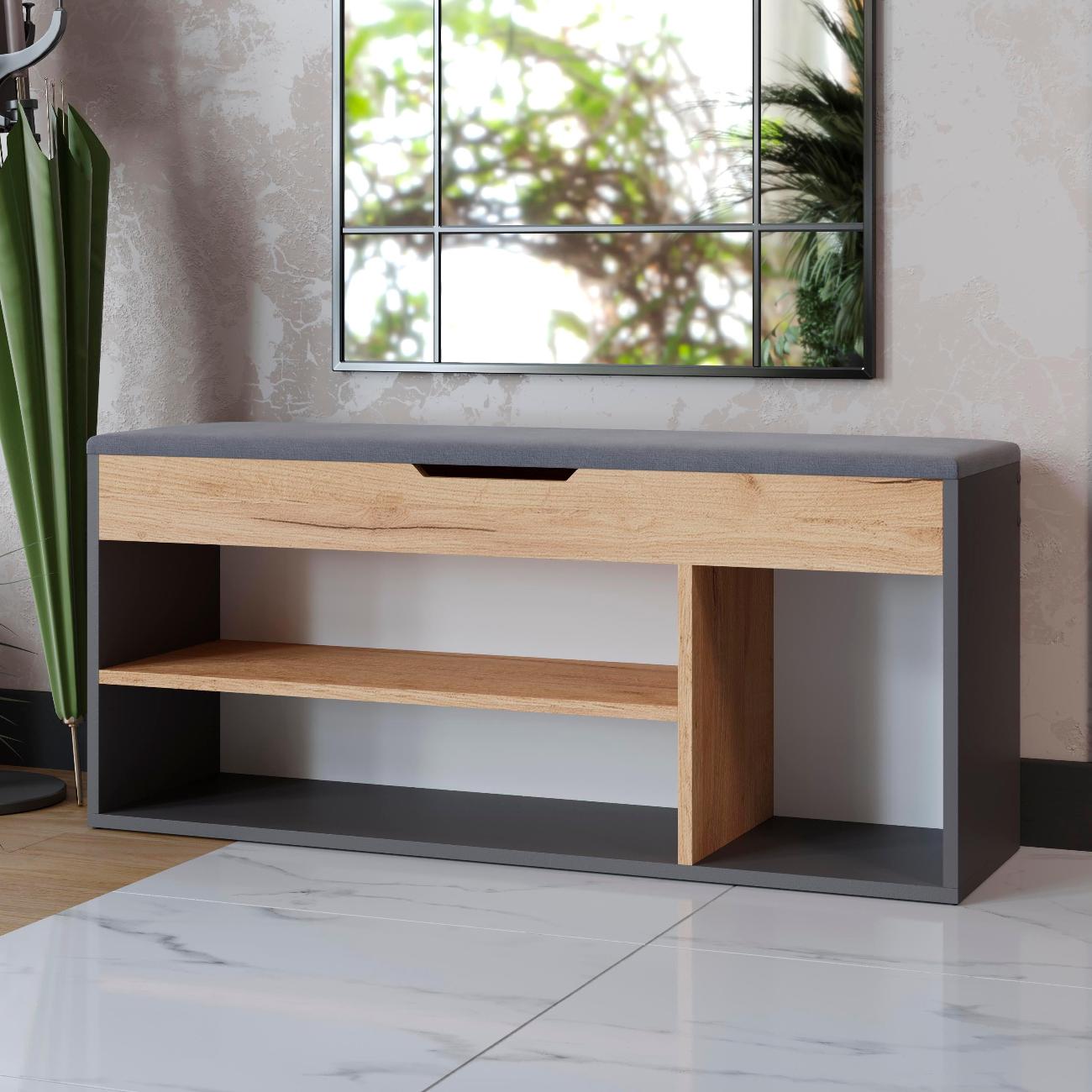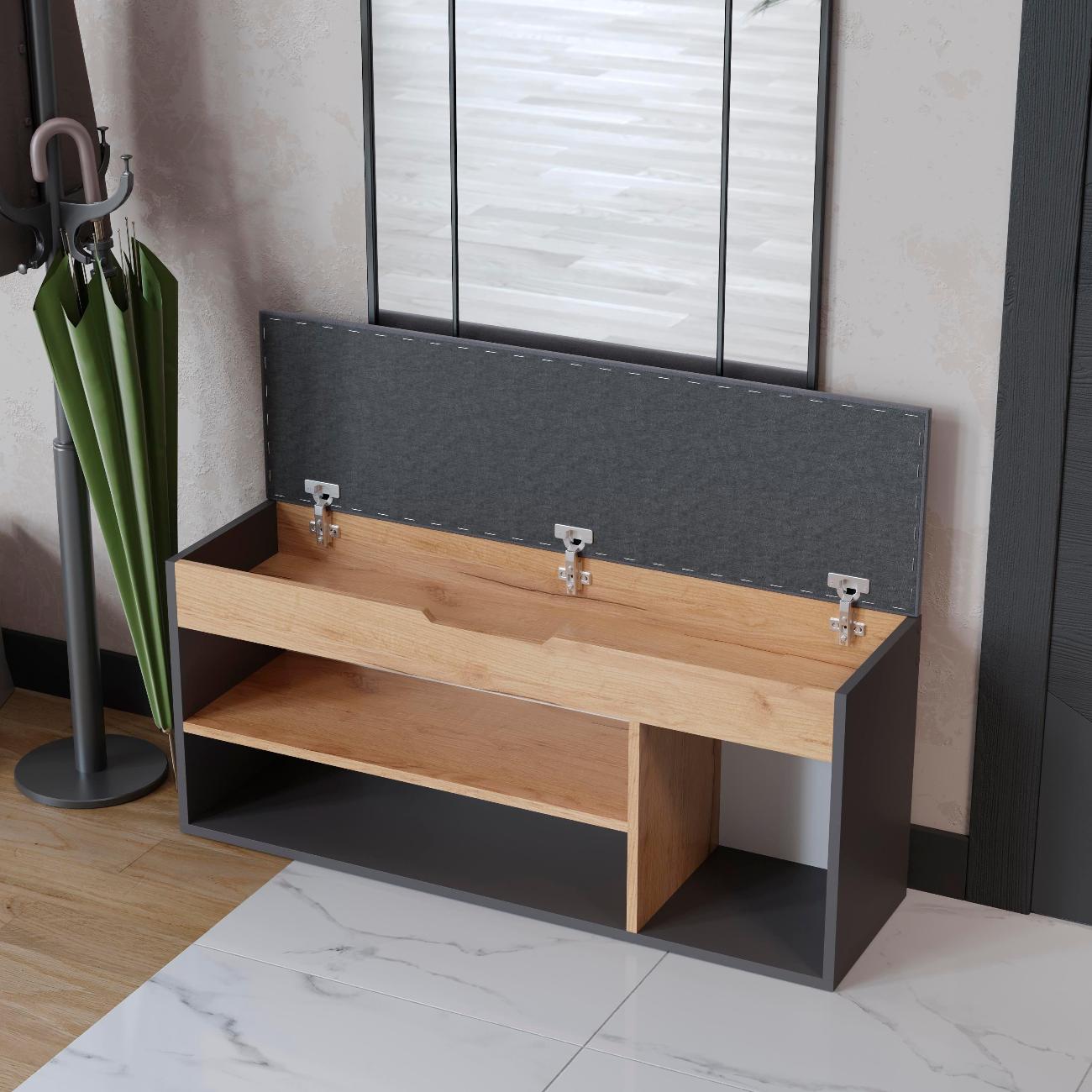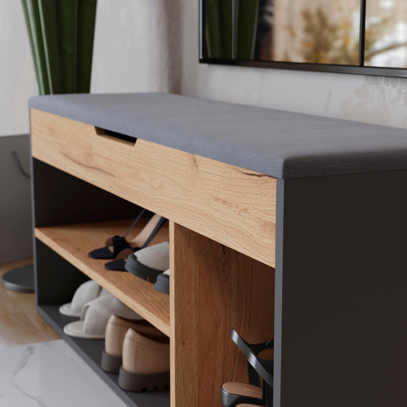 Тумба для обуви тип 12 - это компактная и функциональная мебель, которая идеально подходит для прихожей. Обувница - это отличное решение для хранения обуви в гостинице или коридоре. Этажерка для обуви имеет открытые полки, на которых можно разместить всю вашу обувь, а также сиденье на обувнице обеспечивает дополнительный комфорт при надевании и снятии обуви. Открытая конструкция позволяет воздуху свободно циркулировать, что предотвращает появление неприятного запаха и плесени. Сиденье выполнено из ткани велюра. Обувница с открытыми полками и сиденьем - это не только функциональный элемент интерьера, но и стильный аксессуар, который добавит уюта и комфорта в ваш дом. Обувница с ящиком позволяет хранить ключи, документы или другие предметы, которые всегда должны быть под рукой.Тумба для обуви с сиденьем удобна для прихожей и может быть использована как место для сидения. Деревянная тумба для обуви имеет быстрый и простой процесс сборки. Удобная обувница - это идеальное решение для тех, кто ценит комфорт и удобство. Обувница с открытыми полками выполнена из качественных материалов, которые обеспечивают ее долговечность и надежность. Этажерка с сидением легко впишется в любой интерьер благодаря своей универсальности и стильному дизайну. Габариты: высота - 49 см ,глубина - 30 см,ширина 104 см. Поставляется в разобранном виде. Шкаф для обуви, который можно поставить в любой уголок комнаты или коридора - это отличный подарок в праздничной упаковке на Новый год или день рождения.