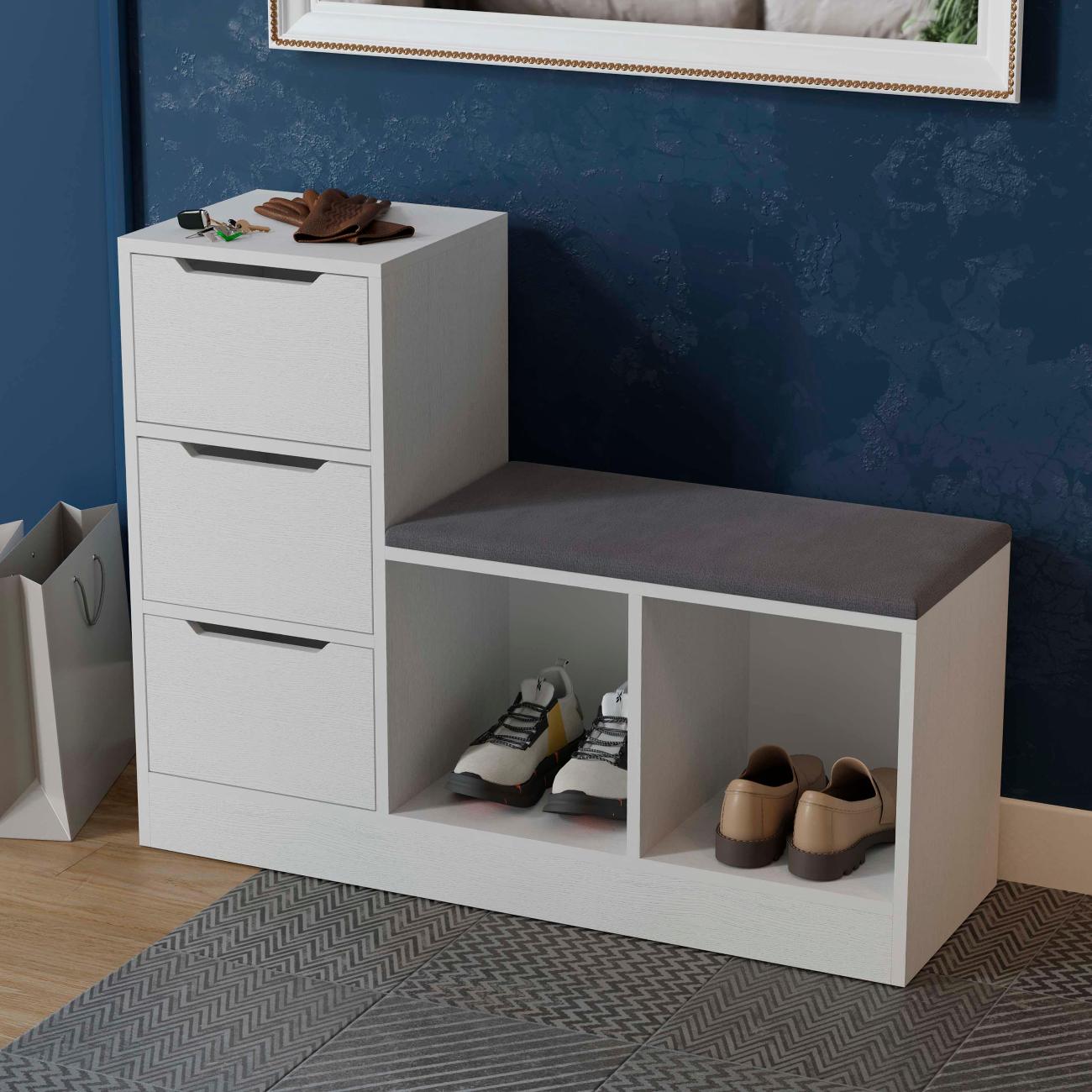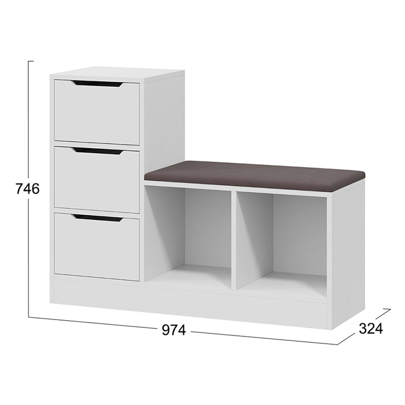 Тумба для обуви тип 14 - это компактная и функциональная мебель, которая идеально подходит для прихожей. Обувница - это отличное решение для хранения обуви в гостинице или коридоре. Этажерка для обуви имеет открытые полки, на которых можно разместить всю вашу обувь, а также сиденье на обувнице обеспечивает дополнительный комфорт при надевании и снятии обуви. Открытая конструкция позволяет воздуху свободно циркулировать, что предотвращает появление неприятного запаха и плесени. Сиденье выполнено из ткани велюра. Обувница с открытыми полками и сиденьем - это не только функциональный элемент интерьера, но и стильный аксессуар, который добавит уюта и комфорта в ваш дом. Обувница с ящиками позволяет хранить ключи, документы или другие предметы, которые всегда должны быть под рукой.Тумба для обуви с сиденьем удобна для прихожей и может быть использована как место для сидения. Деревянная тумба для обуви имеет быстрый и простой процесс сборки. Удобная обувница - это идеальное решение для тех, кто ценит комфорт и удобство. Этажерка для обуви с открытыми полками выполнена из качественных материалов, которые обеспечивают ее долговечность и надежность. Этажерка с сидением легко впишется в любой интерьер благодаря своей универсальности и стильному дизайну. Если вы ищете удобную и функциональную тумбу для обуви, то эта модель - отличный выбор. Тумба под обувь станет незаменимым элементом вашего дома или офиса. Деревянная этажерка имеет 3 ящика хранения. Обивочный материал - Велюр. Цвет каркаса - белый. Габариты: высота - 74 см ,глубина - 32 см,ширина 97 см. Поставляется в разобранном виде. Шкаф для обуви, который можно поставить в любой уголок комнаты или коридора - это отличный подарок в праздничной упаковке на Новый год или день рождения.