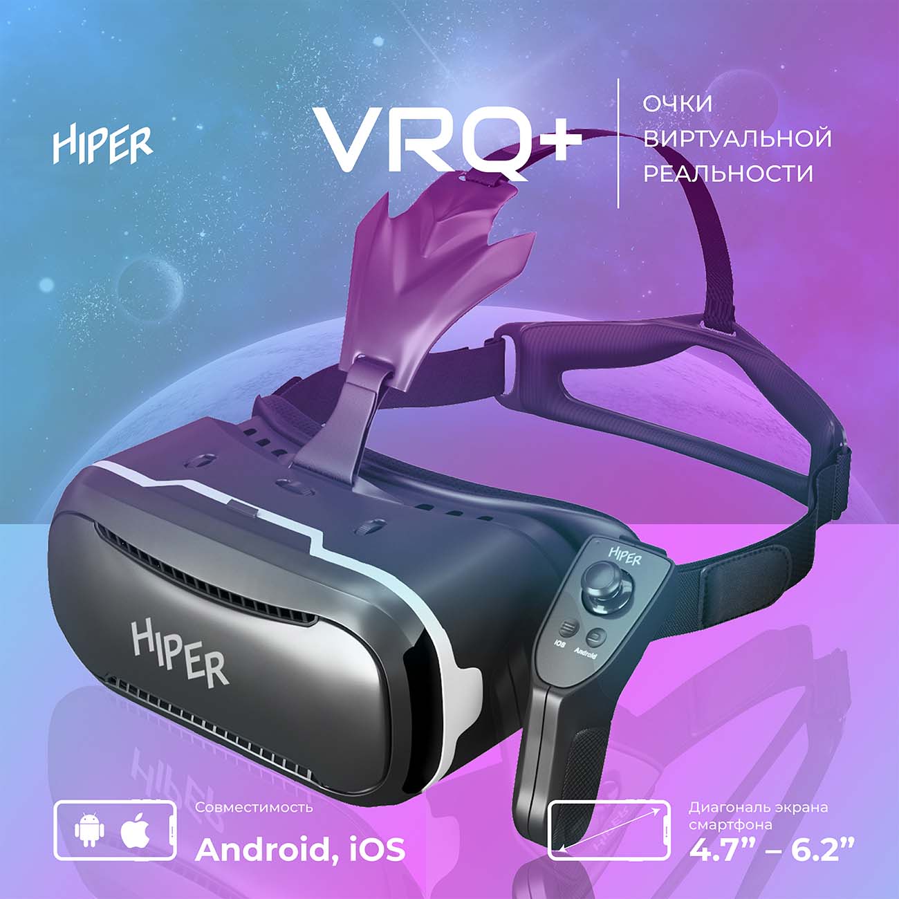 HIPER VRQ+ – недорогие очки виртуальной реальности, предназначенные для использования со смартфонами. Это универсальное устройство совместимо практически с любым девайсом, оборудованным экраном с диагональю от 4,3 до 6 дюймов.