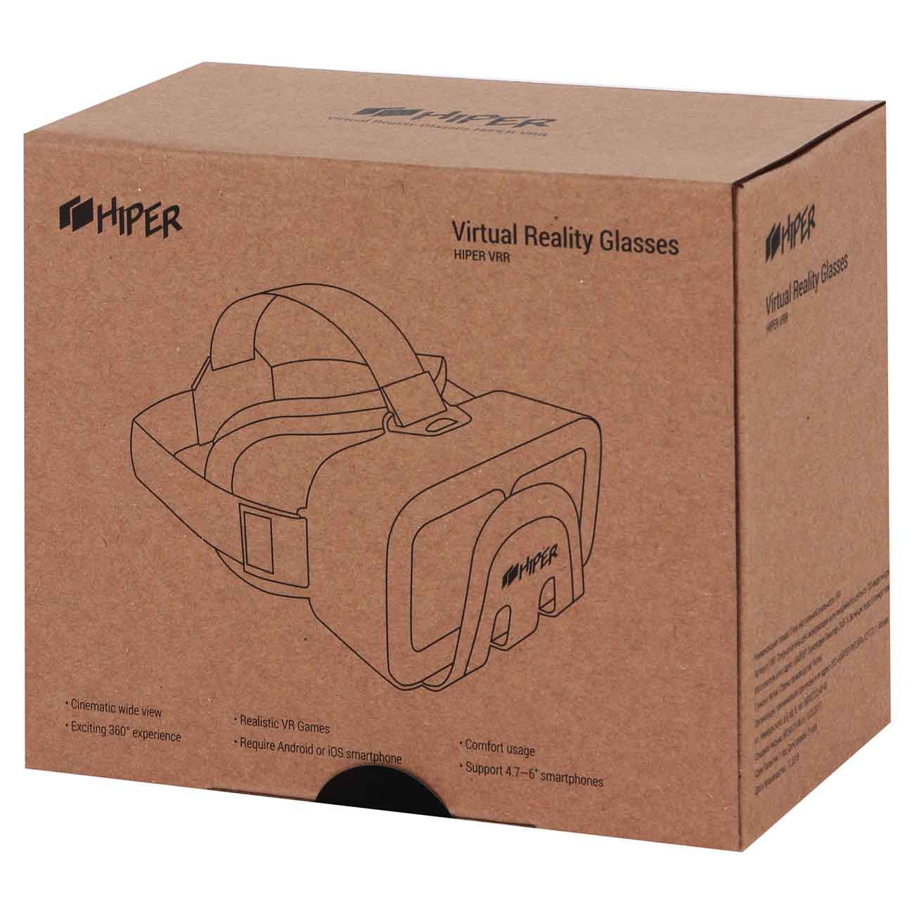 VR-очки Hiper VRR дают возможность просматривать фильмы в формате 3D и панорамное видео, играть, а также пользоваться приложениями с дополненной реальностью. Благодаря им искусственные миры будут выглядеть для их владельца словно настоящие. Они оборудованы держателем для смартфона на ОС iOS либо Android с диагональю экрана от 4,3 до 6 дюймов.