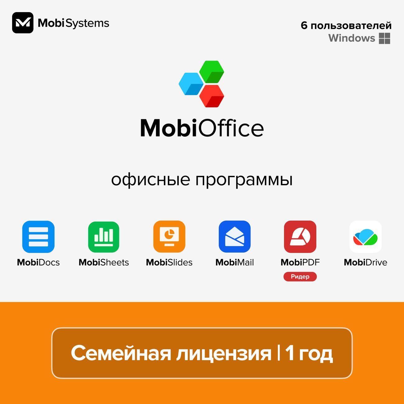 Офисное приложение MobiOffice Для семьи, 1 год, 6 ПК, 50 Гб