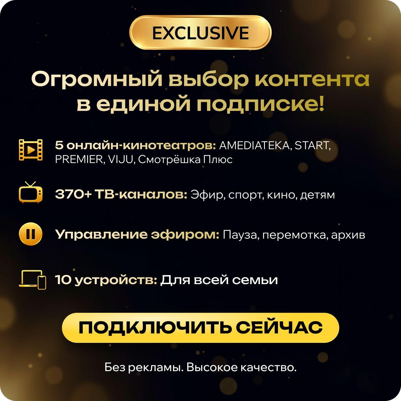 Начните смотреть любимый контент без лишних хлопот — оформите подписку «Смотрёшка Exclusive» прямо сейчас!