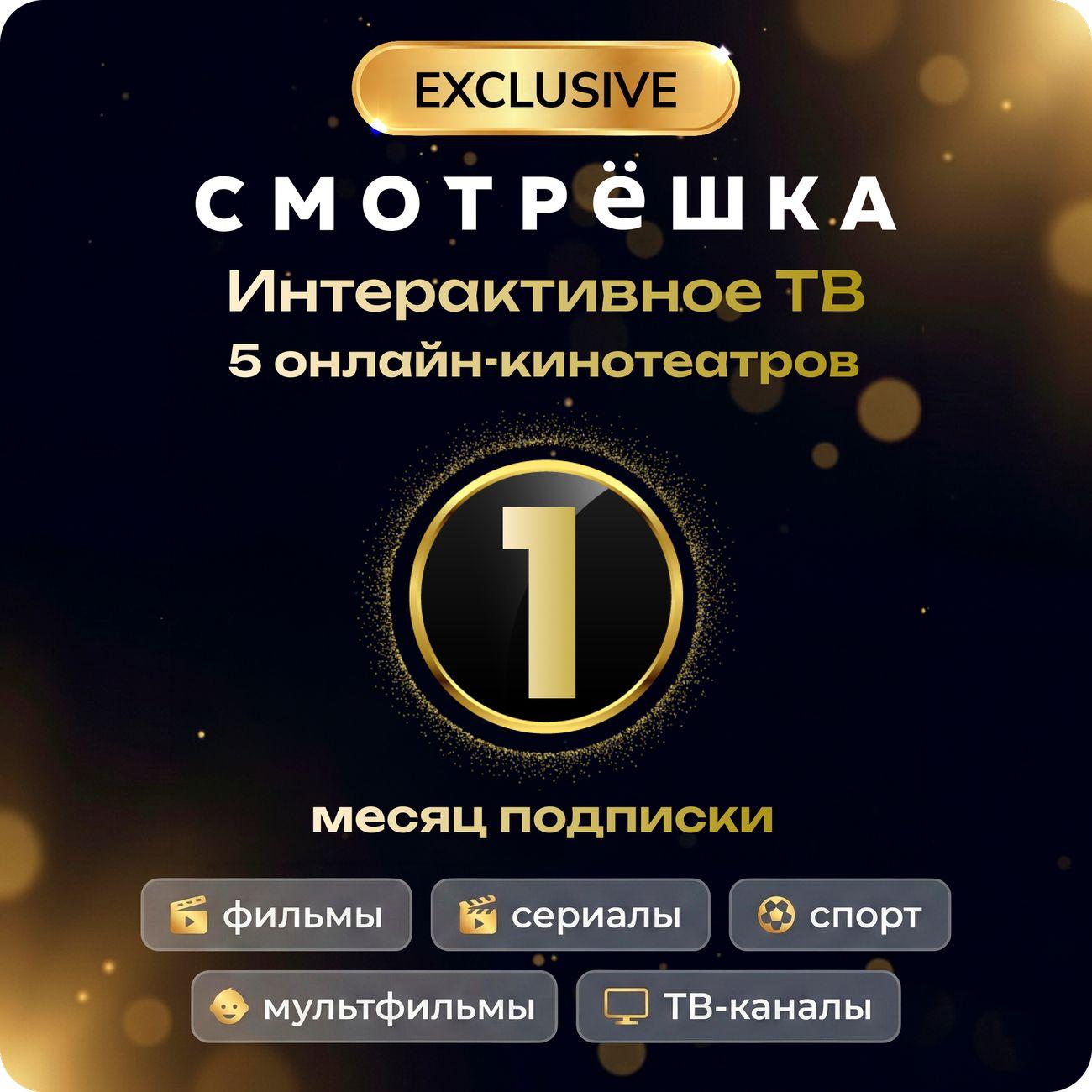 Подписка на онлайн-кинотеатр «Смотрёшка Exclusive» 1 месяц: кино, сериалы и ТВ‑каналы в одном приложении
