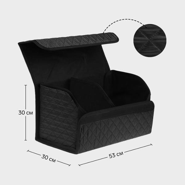 Органайзер для автомобиля Cartage 9600553 — компактное устройство с двумя внутренними отделениями и карманами различного размера для удобного хранения предметов. Предназначен для размещения в багажнике машины. Модель оснащена ручкой для переноски и закрывающейся крышкой с липучкой. Органайзер сделан из ткани оксфорд, легко очищается от загрязнений. Корпус не портится при низких температурах. Габариты — 2x34x53 см, вес равен 102 г.