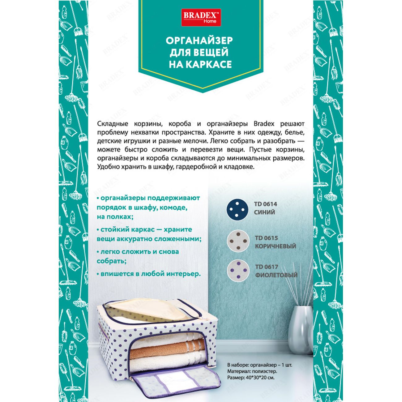 Вы можете купить Органайзер для вещей на каркасе Bradex TD 0614 в магазинах М.Видео по доступной цене. Органайзер для вещей на каркасе Bradex TD 0614: подробное описание, фото и отзывы реальных покупателей, характеристики, возможность скачать инструкции и подобрать аксессуары.