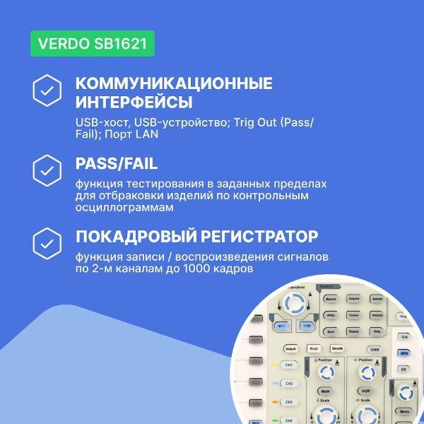 Вы можете купить Осциллограф цифровой VERDO SB1621 2 канала, 60 МГц, 1 Гвыб/с в магазинах М.Видео по доступной цене. Осциллограф цифровой VERDO SB1621 2 канала, 60 МГц, 1 Гвыб/с: подробное описание, фото и отзывы реальных покупателей, характеристики, возможность скачать инструкции и подобрать аксессуары.