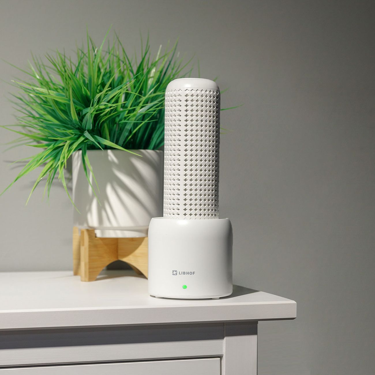Осушитель воздуха Libhof DHS-145, белый, выполнен из пластика и оснащен мотором мощностью 45 Вт. Модель с сенсорным управлением функционирует от сети 220 В. У прибора несколько программ работы, в том числе «Быстрая за 2 часа». Используется силикагель, осушение в сутки составляет 100 г. Прибор предназначен для работы в помещениях площадью до 5 м². Уровень шума не превышает 35 дБ. Доступно использование в качестве ночника — в наличии подсветка корпуса. Встроенный таймер позволяет устанавливать необходимое время работы.