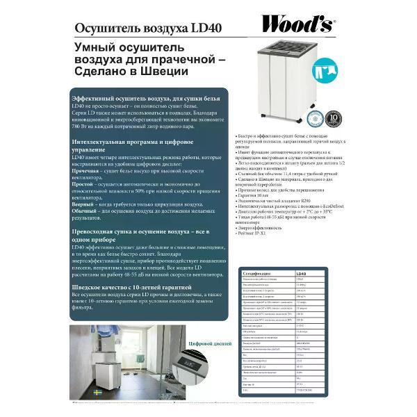 Вы можете купить Осушитель воздуха WOOD'S LD40 в магазинах М.Видео по доступной цене. Осушитель воздуха WOOD'S LD40: подробное описание, фото и отзывы реальных покупателей, характеристики, возможность скачать инструкции и подобрать аксессуары.