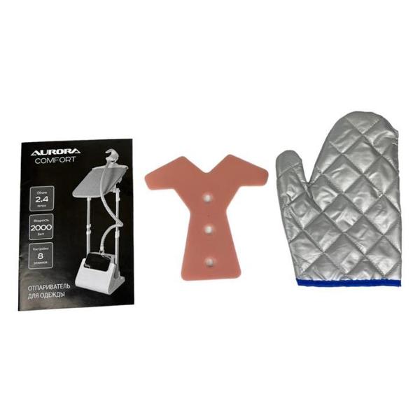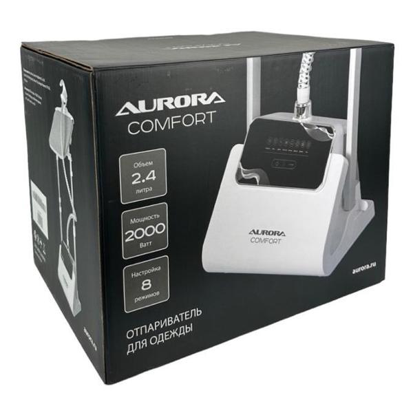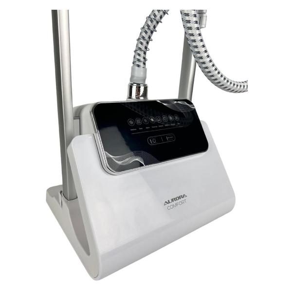 Отпариватель Aurora Comfort GS1708B белого цвета предназначен для напольного размещения. Модель оснащена съемным резервуаром для воды объемом 2,4 л. У отпаривателя пять режимов мощности, рабочее давление составляет 3,5 Бар. Утюжок подает постоянный регулируемый пар мощностью 50 г/мин. Предусмотрена функция парового удара.