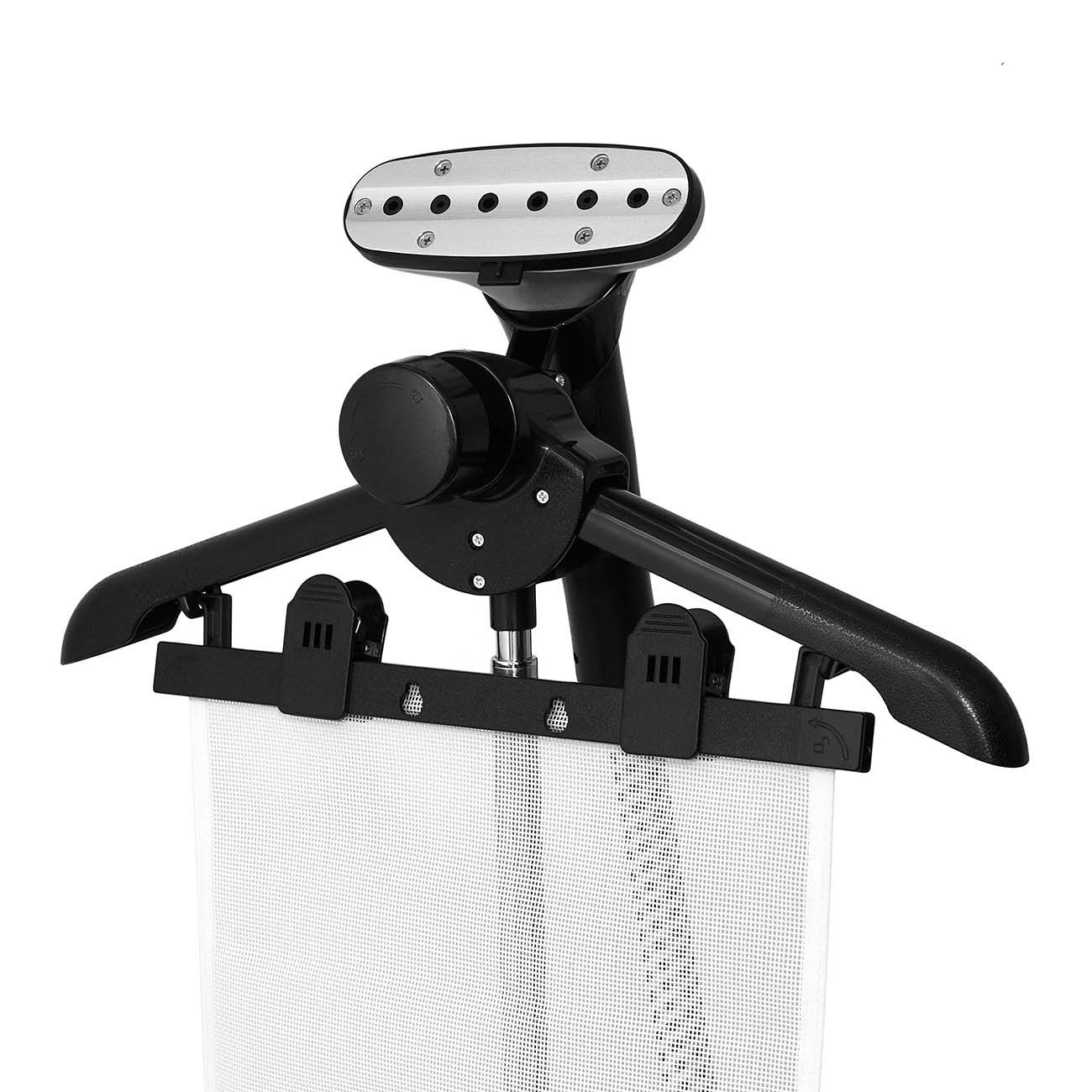 Вы можете расположить вещи на вешалке, установленной на телескопической стойке самого прибора, на сушилке или даже на бельевой верёвке. При этом шторы и тюль удобнее сразу прикрепить к карнизу, а уже потом приступать к их разглаживанию.