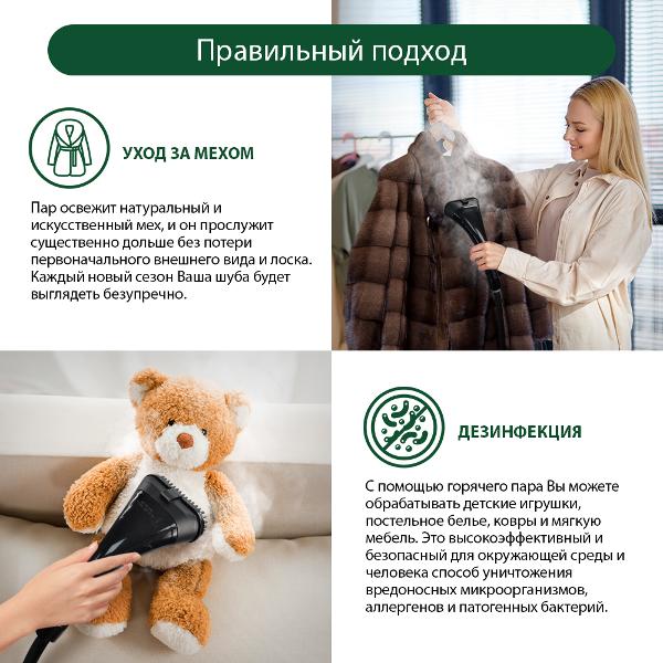 Отпариватель готов к работе примерно через 1 минуту после включения. Управление моделью механическое, с помощью поворотного переключателя. Телескопическая стойка позволяет варьировать высоту расположения плечиков. На корпусе прибора присутствует световая индикация включения. В комплект входит насадка-щетка.