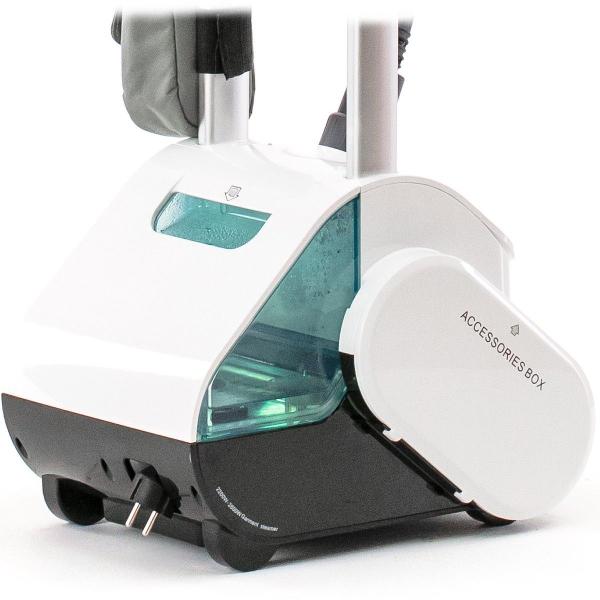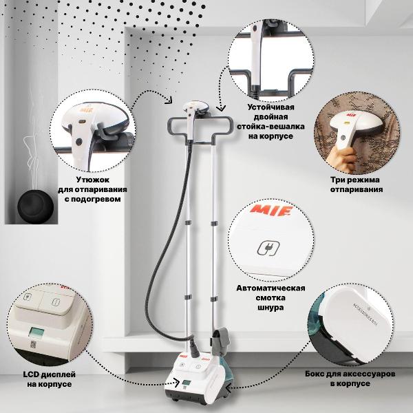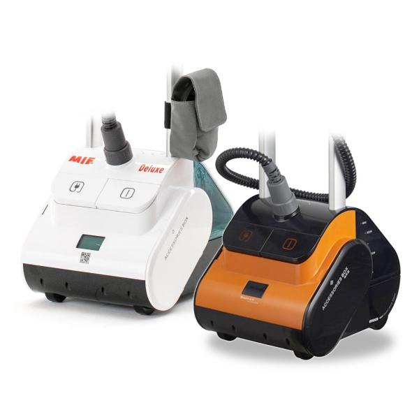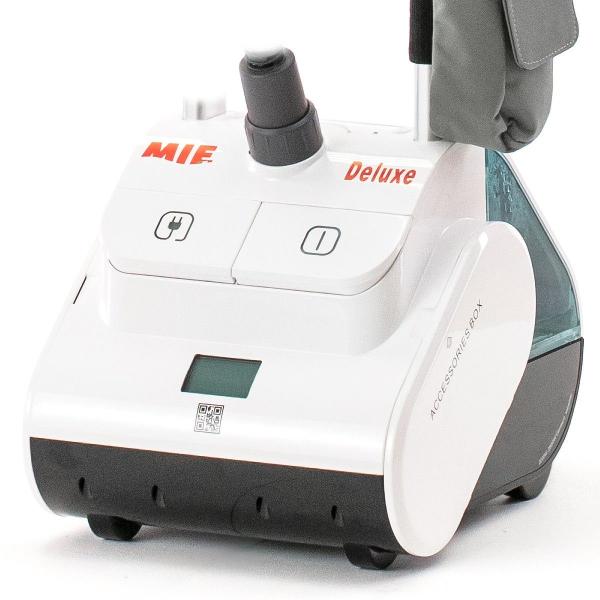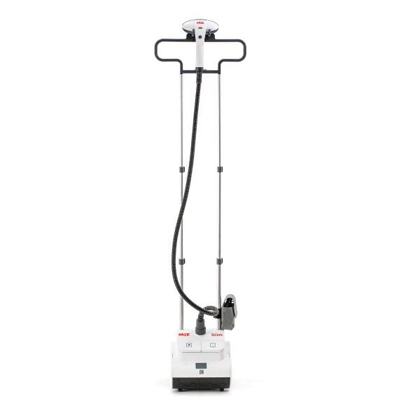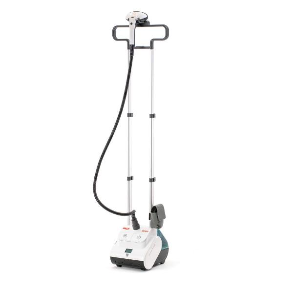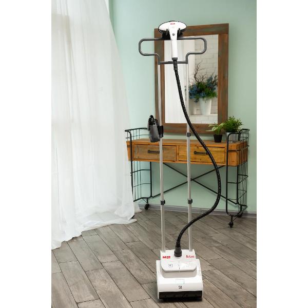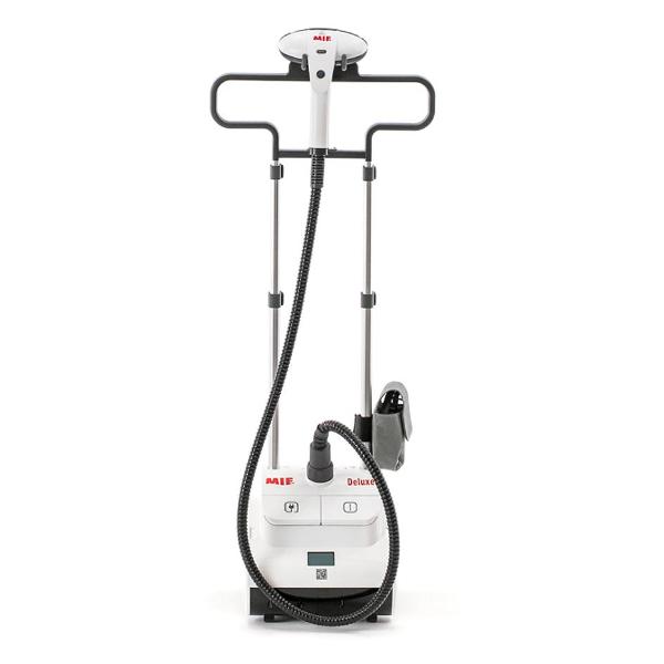 Вертикальный отпариватель Mie Deluxe White оснащен резервуаром для воды 2,5 л. Модель подает пар под давлением 3,5 бар и с интенсивностью до 85 г/мин через шланг 1,65 м. Предусмотрены три режима мощности, функция автоматического отключения и противокапельная система.