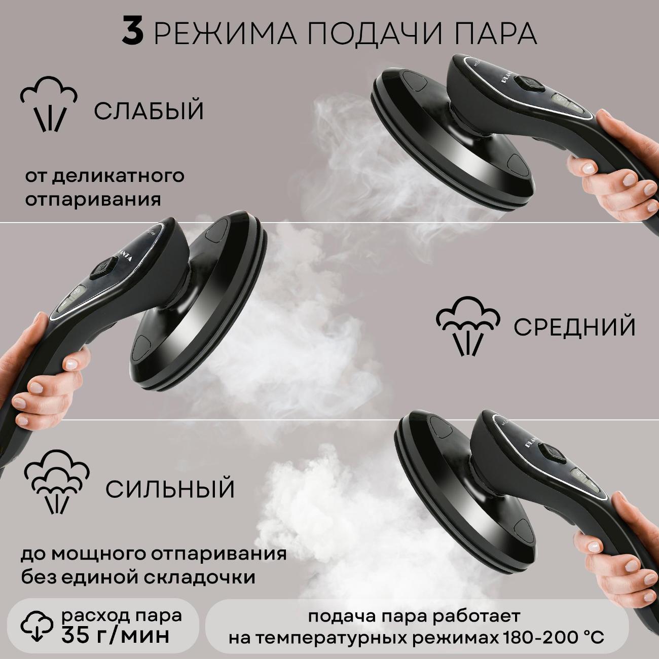 Отпариватель занимает мало места - половину полки в шкафу или половину табурета, очень лёгкий как без воды, так и с ней. Резервуар на 600 мл, пар без капелек, утюжок в двух положениях, 6 температурных режимов... И это ещё не весь перечень того, что он может. Вишенка на торте - отпариватель может работать и как утюг! И всё это при минимуме каких-то манипуляций: налила воду, включила в сеть, выбрала температуру и скорость отпаривания и всё - вещи в порядке, время сэкономлено.