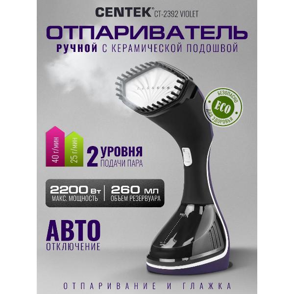 Вы можете купить Отпариватель ручной Centek CT-2392 Violet в магазинах М.Видео по доступной цене. Отпариватель ручной Centek CT-2392 Violet: подробное описание, фото и отзывы реальных покупателей, характеристики, возможность скачать инструкции и подобрать аксессуары.