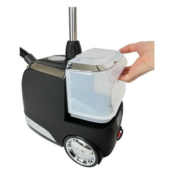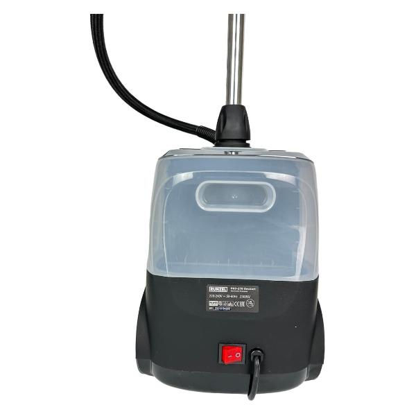 Вертикальный отпариватель Runzel PRO-270 Omstart напольного типа представлен в черном цвете. Устройство оснащено съемным баком для воды объемом 3,5 л, его достаточно для бесперебойной работы в течение 100 минут. Сила подачи пара — 70 г/м. Потребляемая мощность — 2300 Вт.