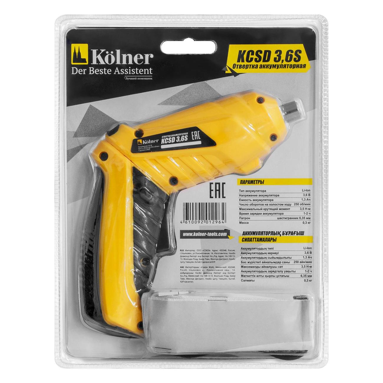 Отвертка аккумуляторная Kolner KCSD 3,6S — универсальная модель в желто-черном корпусе. Максимальное количество оборотов в минуту — 250. Подходит для мелких ремонтных работ.