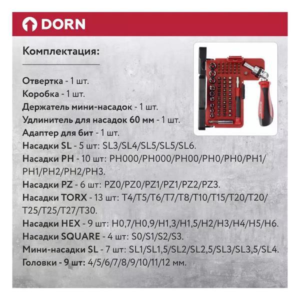 Вы можете купить Отвертка DORN Храповая отвертка в магазинах М.Видео по доступной цене. Отвертка DORN Храповая отвертка: подробное описание, фото и отзывы реальных покупателей, характеристики, возможность скачать инструкции и подобрать аксессуары.