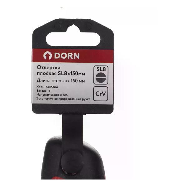 Отвертка плоская DORN SL8х150 мм. Отвертка DORN (Дорн) JBSR191240070 применяется для винтов, имеющих прямой шлиц.Преимущества и особенности:Намагниченный наконечник обеспечивает надежное удержание крепежа.Рукоятка с прорезиненным покрытием удобно лежит в руке и не выскальзывает.Имеет отверстие для подвешивания на крючок.. Тип: Отвертки плоские; Бренд: DORN; Тип шлица: SL8; Длина стержня (мм): 150; Диэлектрическое покрытие: Нет; Намагниченный наконечник: Да; Ударная: Нет; Материал: Хром-ванадиевая сталь; Вес 0.1; Страна производства: Китай