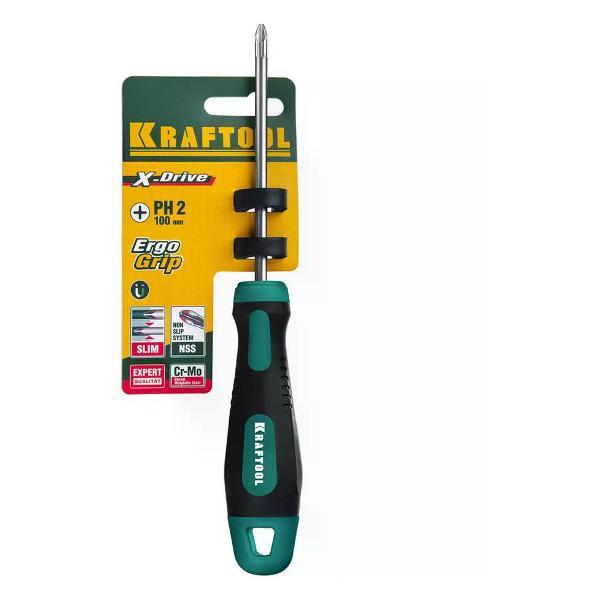 Отвертка крестовая KRAFTOOL X-Drive PH2x100 мм. Отвертка KRAFTOOL X-Drive оснащена стержнем SlimFit из хромомолибденовой стали.Специальная технология ковки обеспечивает максимальную прочность стержня при работе в труднодоступных местах.Имеет намагниченный наконечник.Насечки на шлице предотвращают его выскальзывание из крепежа и исключают повреждение шлица и поверхностей.Двухкомпонентная рукоятка обеспечивает надежный хват.Также в рукоятке предусмотрено отверстие для подвешивания.. Тип: Отвертки крестовые; Бренд: KRAFTOOL; Тип шлица: PH2; Длина (мм): 208; Длина стержня (мм): 100; Диэлектрическое покрытие: Нет; Намагниченный наконечник: Да; Ударная: Нет; Материал: Хромомолибденовая сталь; Вес 0.076; Страна производства: Тайвань