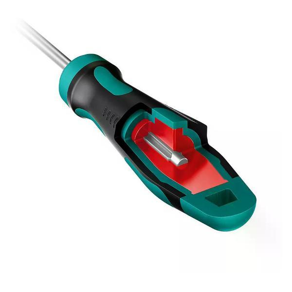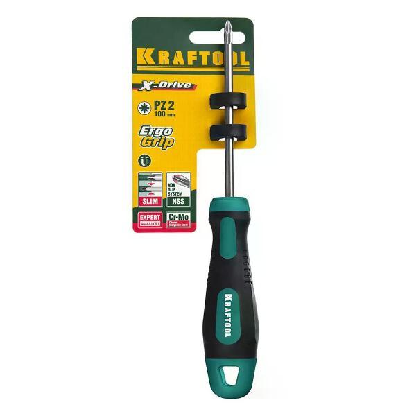 Отвертка крестовая KRAFTOOL X-Drive PZ2x100 мм. Отвертка KRAFTOOL X-Drive оснащена стержнем SlimFit из хромомолибденовой стали.Специальная технология ковки обеспечивает максимальную прочность стержня при работе в труднодоступных местах.Имеет намагниченный наконечник.Насечки на шлице предотвращают его выскальзывание из крепежа и исключают повреждение шлица и поверхностей.Двухкомпонентная рукоятка обеспечивает надежный хват.Также в рукоятке предусмотрено отверстие для подвешивания.. Тип: Отвертки крестовые; Бренд: KRAFTOOL; Тип шлица: PZ2; Длина (мм): 208; Длина стержня (мм): 100; Диэлектрическое покрытие: Нет; Намагниченный наконечник: Да; Ударная: Нет; Материал: Хромомолибденовая сталь; Вес 0.077; Страна производства: Тайвань
