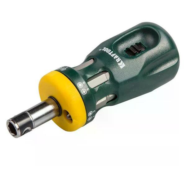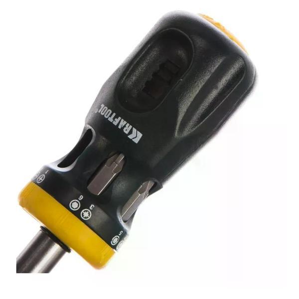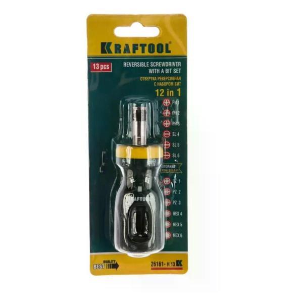 Отвертка реверсивная KRAFTOOL применяется для монтажа и демонтажа резьбовых соединений.Оснастка изготовлена из хромованадиевой стали, что позволяет выдерживать значительные нагрузки.Прочный реверсивный механизм имеет три положения: фиксация, откручивание, закручивание.Двухкомпонентная рукоятка обеспечивает надежный хват.Двусторонние биты хранятся в специальном магазине корпуса рукоятки.Комплектация:Биты SL: SL4 -1 шт, SL5 - 1 шт, SL6 - 1 шт.Биты PH: PH1 - 1 шт, PH2 - 1 шт, PH3 - 1 шт.Биты PZ: PZ1 - 1 шт, PZ2 - 1 шт, PZ3 - 1 шт.Биты HEX: H4 - 1 шт, H5 - 1 шт, H6 - 1 шт.. Тип: Наборы отверток; Бренд: KRAFTOOL; Количество в упаковке (шт): 21; Диэлектрическое покрытие: Нет; Намагниченный наконечник: Нет; Ударная: Нет; Материал: Хром-ванадиевая сталь; Вес 0.133; Страна производства: Тайвань