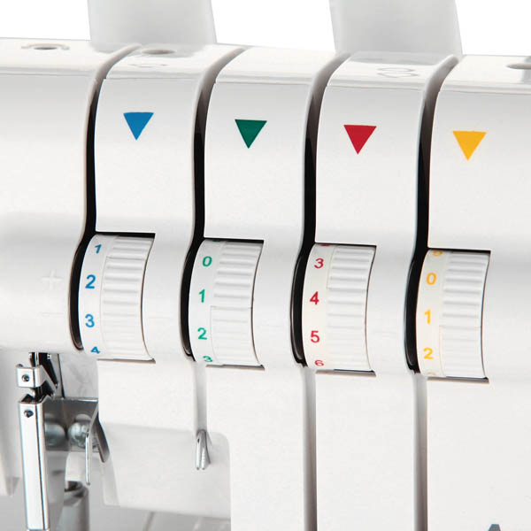 Оверлок Astralux Over Pro 999 даёт возможность делать швы, состоящие из нескольких ниток. Эта модель оборудована четырьмя катушкодержателями, а подготовить её к работе можно быстро и просто благодаря цветной схеме заправки нитей.