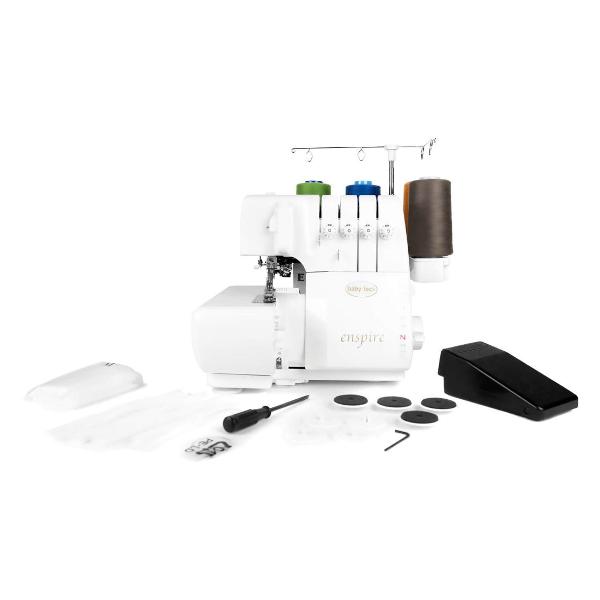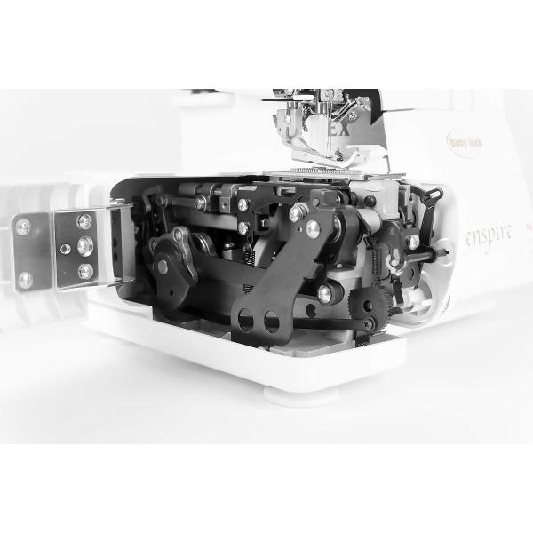 Оверлок Babylock Enspire BLE1EX с максимальной скоростью шитья 1500 стежков в минуту работает со всеми типами материалов, включая стрейчевые, трикотажные, футер в несколько слоев. Машина максимальной мощностью 135 Вт рассчитана на использование двух, трех, четырех нитей с автоматическим или ручным контролем натяжения (на выбор). Она выполняет операции профессионального качества, создавая швы: двухниточные — оверлочный, плоский, укрепительный; трехниточные — оверлочный, укрепительный, Flatrock; четырехниточный — оверлочный, укрепительный; узкий ролевой; ролевой подшивочный; позволяет вставлять тесьму, выполнять пришивание манжет, защипы, сосбаривание рукавов.